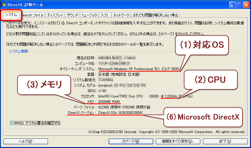 VRAM 32MB以上 Microsoft(R)DirectX(R) 9.0c以上対応 |